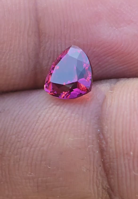 The elegant trillion cut maximizes the stone's natural luster and color saturation, creating a bold and sophisticated look perfect for statement rings, Art Deco-inspired designs, or dramatic pendant settings. This loose gemstone offers exceptional VVS clarity with no visible inclusions, appearing completely eye-clean, ensuring maximum transparency and light performance. Sourced from Sri Lanka's renowned gemstone deposits, this 1.78ct pyrope garnet combines natural beauty with lasting value.